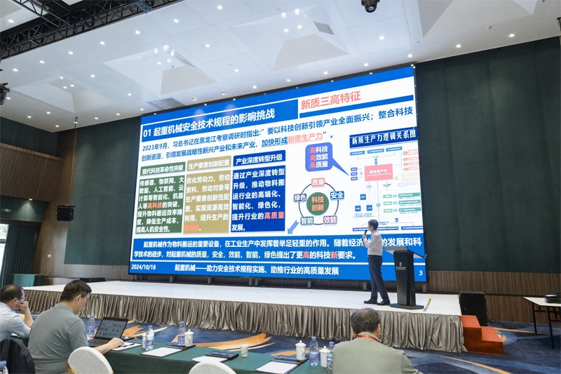 其次,本次会议开展了起重机械“智能化、数字化、绿色化机本质安全”高峰论坛的专题技术报告,其中大满贯起重机邓海龙带来《智能吊运让世界更智能》专项报告,与各位代表共同探讨如何让起重机械前沿智能技术与安全高效、绿色转型、双碳目标创新理念加速融合,共同开拓企业及行业发展新动能。