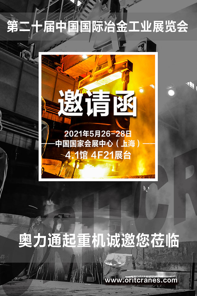 大满贯诚邀您第二十届中国国际冶金工业展览会,上海起重机,冶金起重机,欧式冶金卷扬,钢包起重机,龙门吊,欧式双梁桥式起重机,起重设备,单梁式起重机厂家,天车起重机,起重机厂家,起重机公司,起重设备生产厂家,防爆单梁起重机厂家,双梁桥式起重机。