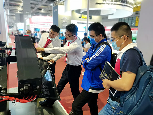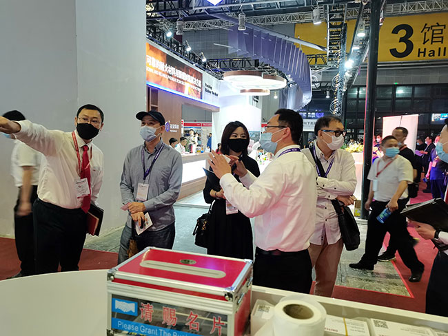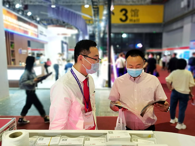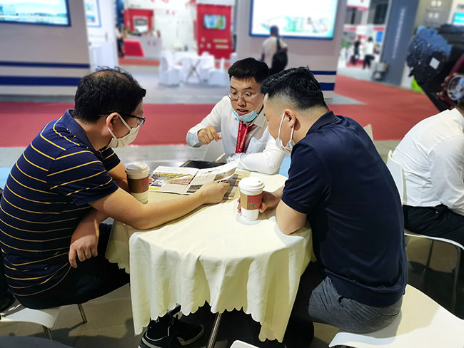 展会现场,大满贯销售经理热力十足,雄心勃勃,对每一位客户进行专业讲解。